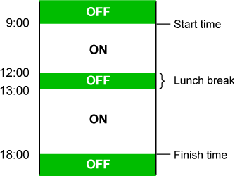 O painel do operador da máquina pode ser ligado ou desligado (On/Off) numa hora predefinida.