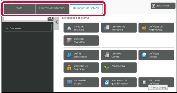 Quando toca no separador [Definições de Sistema], surgem, no ecrã, as teclas dos itens.
