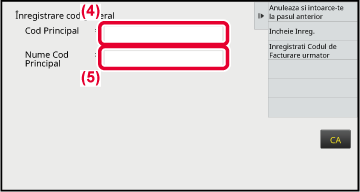 Pentru informații privind corectarea codului, consultați pașii 4 - 7 "ÎNREGISTRAREA UNUI NOU COD DE FACTURARE".Atingeți [Incheie Inreg.] pe panoul de acțiuni.