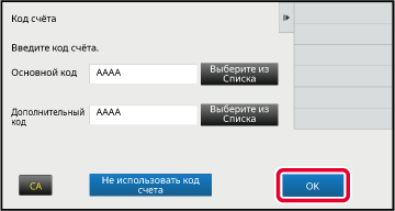 Когда отображается окно ввода кода счета, коснитесь поля [Основной код], затем введите основной код.