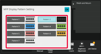 Makinede birçok renk düzeni önceden ayarlanmış olarak mevcuttur. Dokunmatik panelden
