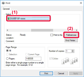 In the application, select [Print] from the [File] menu. Make sure that the machine's
