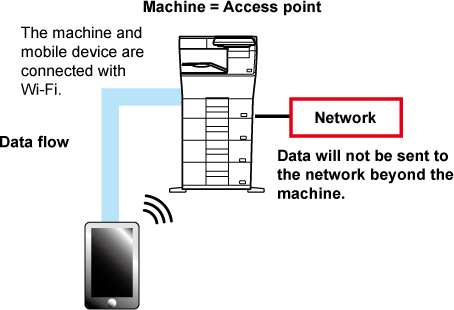 The machine and mobile device directly communicate via Wi-Fi. In this mode, communication