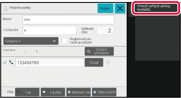 Na obrazovce registrace adresy klepněte na [Omezit veřejné adresy kontaktů] na panelu akcí.