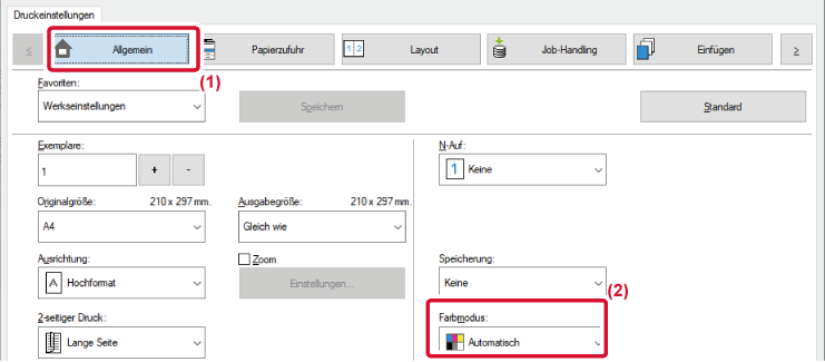 Für den "Farbmodus" sind die folgenden drei Auswahloptionen