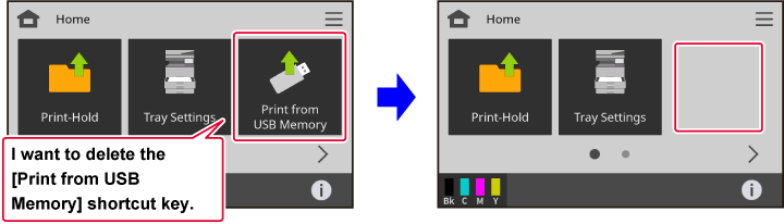 The settings are saved in the machine and applied.You can delete unneeded shortcut keys.