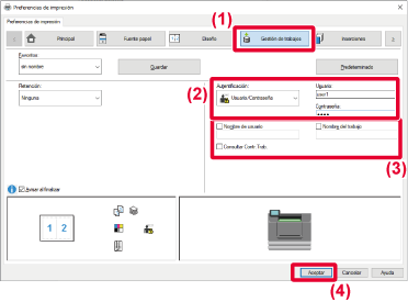 deberán autenticarse para cada trabajo de impresión. Para ello es
