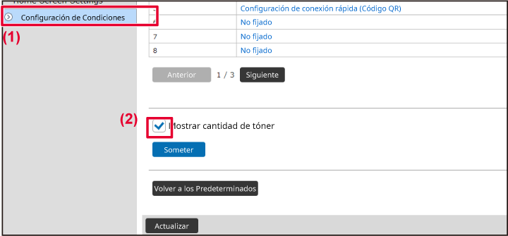 ).Marque la casilla "Mostrar cantidad de tóner" y haga clic en el botón [Someter].