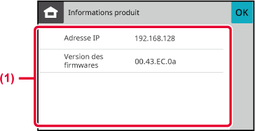tel que l'état de la connexion réseau et la version du micrologiciel,