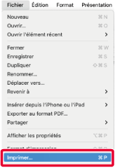 Dans l'application, sélectionnez [Imprimer] dans le menu [Fichier].