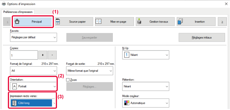 Les pages sont imprimées de manière à pouvoir être reliées par le côté gauche ou droit. |