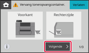 voor het vervangen van de toner inzamelcontainer. Volg de aanwijzingen.