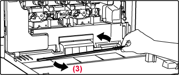 Når du setter inn den fjernede tonerkassetten, må du sørge for å plassere den slik at den tannhjulsmonterte siden vender opp.