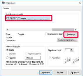 Selectaţi driverul imprimantei pentru echipament şi faceţi clic pe butonul [Preferinţe].
