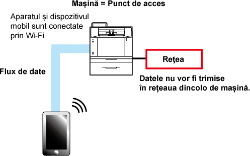 Wi-Fi. În acest mod, comunicarea cu rețeaua la care este conectat