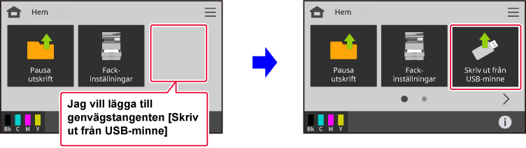 Inställningarna lagras i maskinen och aktiveras.Du kan ta bort onödiga snabbknappar.