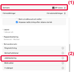 2. Välj [Jobbhantering] i ”Skrivaralternativ”.