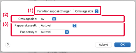 välj kassett och papperstyp som ska användas för omslaget och ställ
