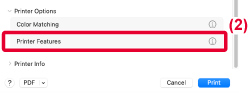- Zvolte [Printer Features] z nabídky „Printer Options“ a