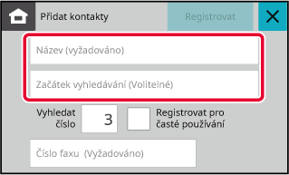 Klepněte na [Číslo faxu], vložte číslo faxu a klepněte