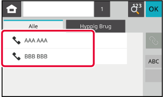 for destinationen i skærmbilledet Adressebog. (One-touch-opkald)