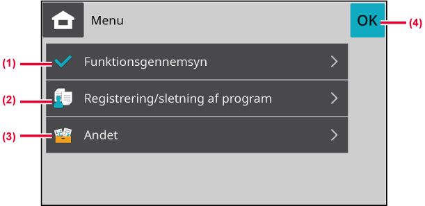 I menutilstand kan du vælge enhver funktionsindstilling,