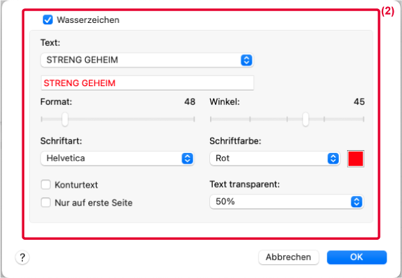 - Aktivieren Sie das Kontrollkästchen [Wasserzeichen], und konfigurieren