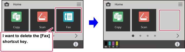 The settings are saved in the machine and applied.You can delete unneeded shortcut keys.