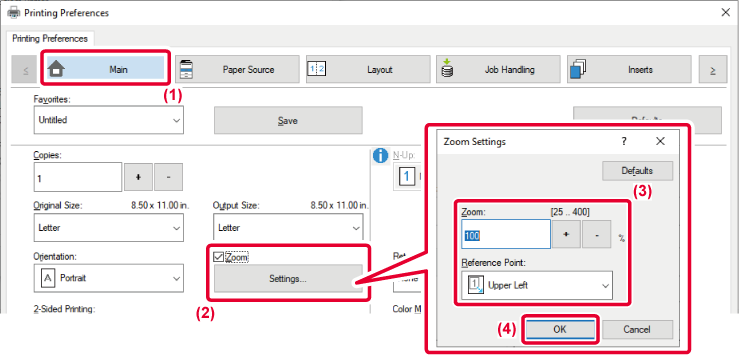 increments of 1%. In addition, select [Upper Left] or [Center]