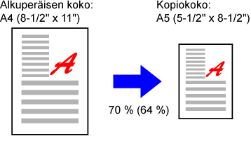 määritetään kopioitaessa paperille, joka on eri kokoinen kuin alkuperäinen, tai