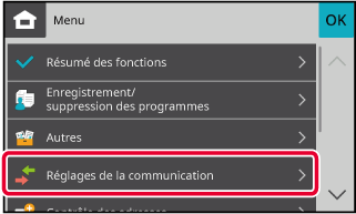 Appuyez sur l'icône [Menu], [Réglages de communication]