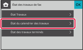 Appuyez sur la touche [État des travaux de fax], puis