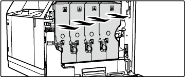 Az eltávolított festékkazetta behelyezésekor ügyeljen arra, hogy a kazetta a fogaskerékkel ellátott oldalával felfelé álljon.