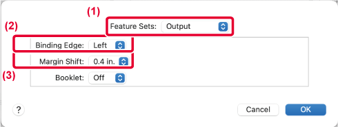 2. MacOS 12 vagy korábbi verzió esetében válassza a [Printer Features], majd a [Output] lehetőséget.