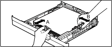 Spostare le piastre delle guide A e B nel vassoio sulla posizione massima.
