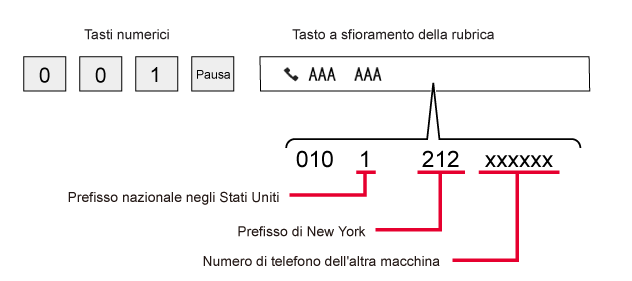 internazionale (ad esempio, "001") e il prefisso internazionale