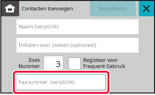 Tik op [Faxnummer], voer het faxnummer in en tik op