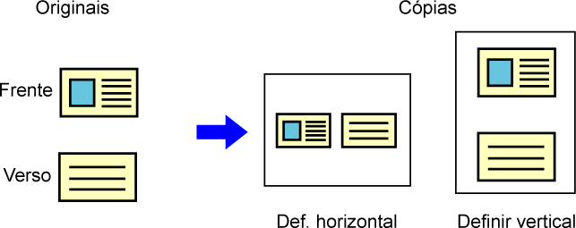 páginas de um original numa única folha de papel num esquema uniformizado.
