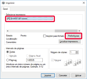 O botão que se utiliza para abrir a janela de propriedades do controlador de impressora (normalmente [Propriedade] ou [Preferências]) pode variar com a aplicação.