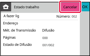 Toque na tecla [Cancelar] quando aparecer um ecrã a confirmar que o trabalho foi cancelado.