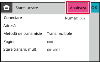 Atingeți tasta [Anulează] atunci când apare un ecran care confirmă că lucrarea este anulată.