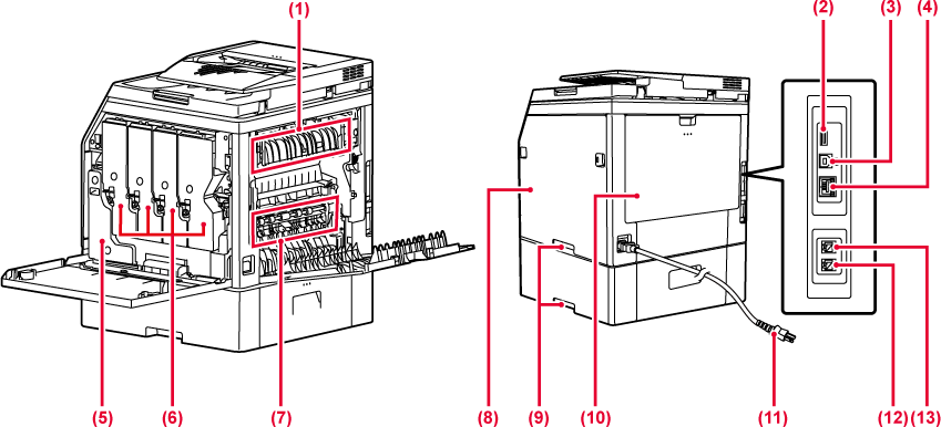 Fixačná jednotka je horúca. Pri vyťahovaní zaseknutého papiera dávajte pozor, aby ste sa nepopálili.Používa sa na pripojenie