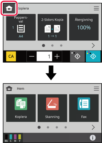 På hemskärmen visas knappar som du kan använda för att välja lägen