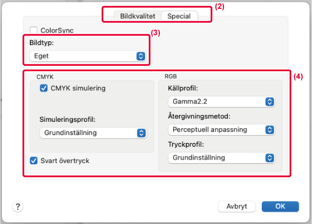 i macOS markerar du kryssrutan [ColorSync] så att markeringen