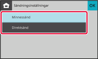 Välj en överföringsmetod i [Minnessänd] eller [Direktsänd].