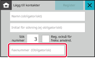 Tryck på [Faxnummer], ange faxnumret och tryck på