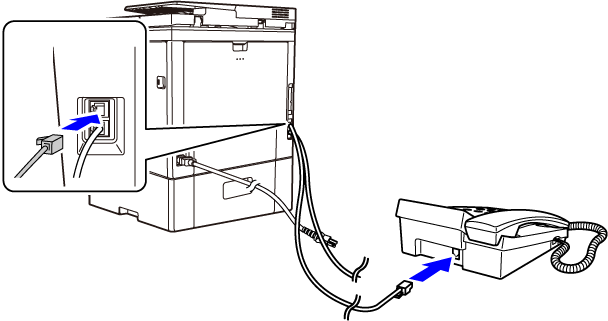 en faxmottagning på maskinen. Den externa telefonen ansluts på nedanstående
