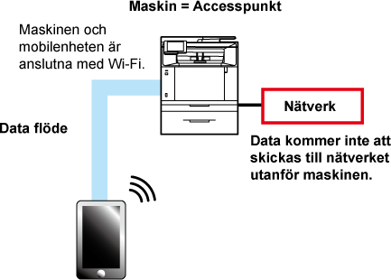 Maskinen kan ställas in som en åtkomstpunkt och kommunicera