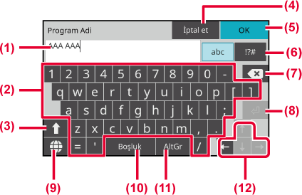 → [Çaliştirma Ayarlari] → [Klavye Ayarları] seçin.