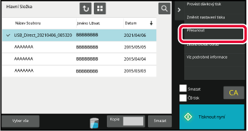 Klepněte na klávesu složky, kam chcete přesunout soubor.